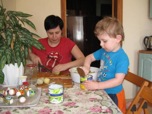 Михася викладає кукурудзу